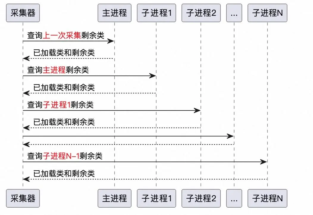 - 每個版本只採集和上報未加載過的類數據,首次採集時,以類全集為輸入;後續的每次採集,以上一版本未加載的類為輸入,採集次數越多,需要查詢的類越少。