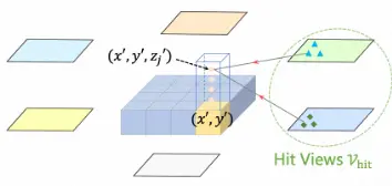 3D座標生成器生成視錐空間的一系列3D點,具體地,首先將相機視錐空間離散成大小為的網格,網格中的每一點用表示。3D空間中一個點用表示。通過相機內外參可以將相機視錐空間轉換到3D空間中。最後再進行歸一化。