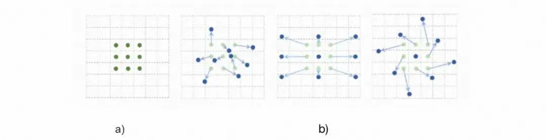 圖1‑7 可形變卷積示意,a) 普通卷積 b) 可形變卷積[7]