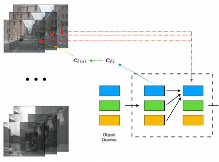 特徵轉換模塊首先使用object query生成3D參考點,將參考點投影到PV空間獲取圖像特徵,獲取到的圖像特徵能進一步優化物體的3D表徵,得到物體的3D特徵。