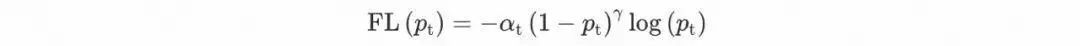Focal Loss是交叉熵損失函數的拓展,常用於分類問題。普通交叉熵損失函數在正負樣本不均衡時表現不佳,因此引入平衡交叉熵。另外普通交叉熵損失函數對於難例無法重點學習,因此引入難例聚焦。最終形式為: