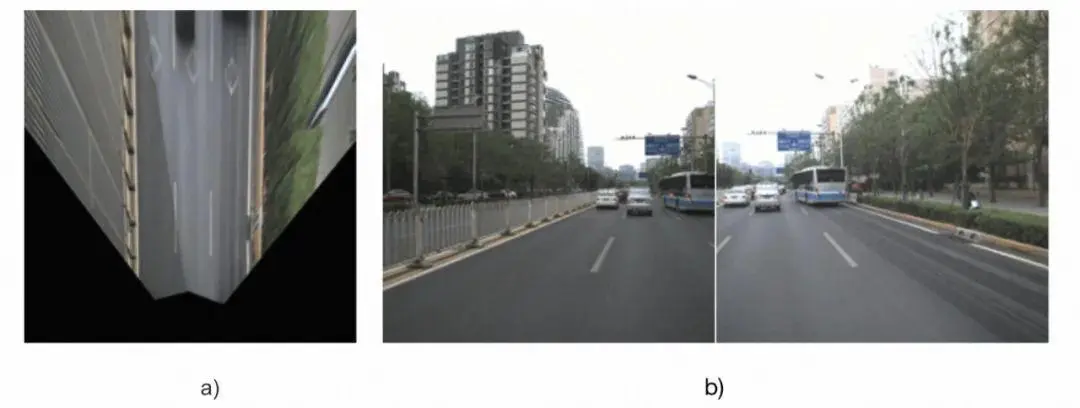 圖1‑2 BEV空間和PV空間的圖像可視化,a) BEV空間 b) PV空間