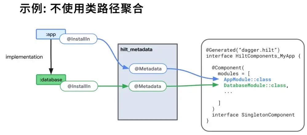 其次,Hilt Gradle 插件僅在應用級別聚合類,因此與使用 api 不同,項目中庫的編譯不受影響。