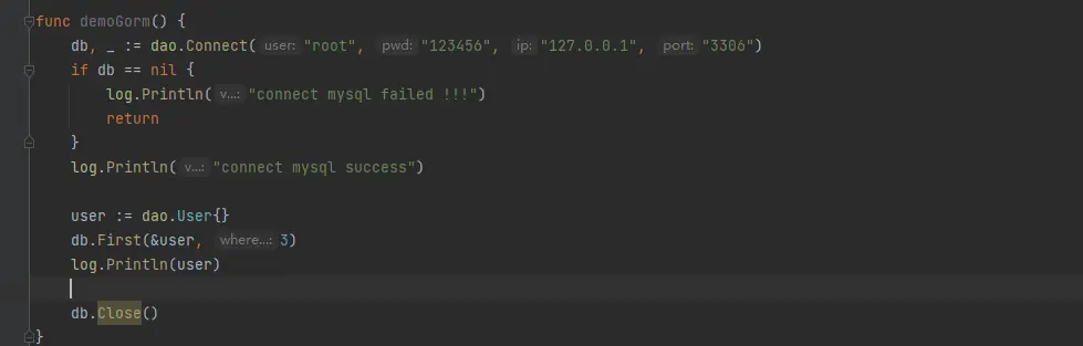 這樣,我們使用 gorm 的話,連接數據我們就可以這樣來寫
