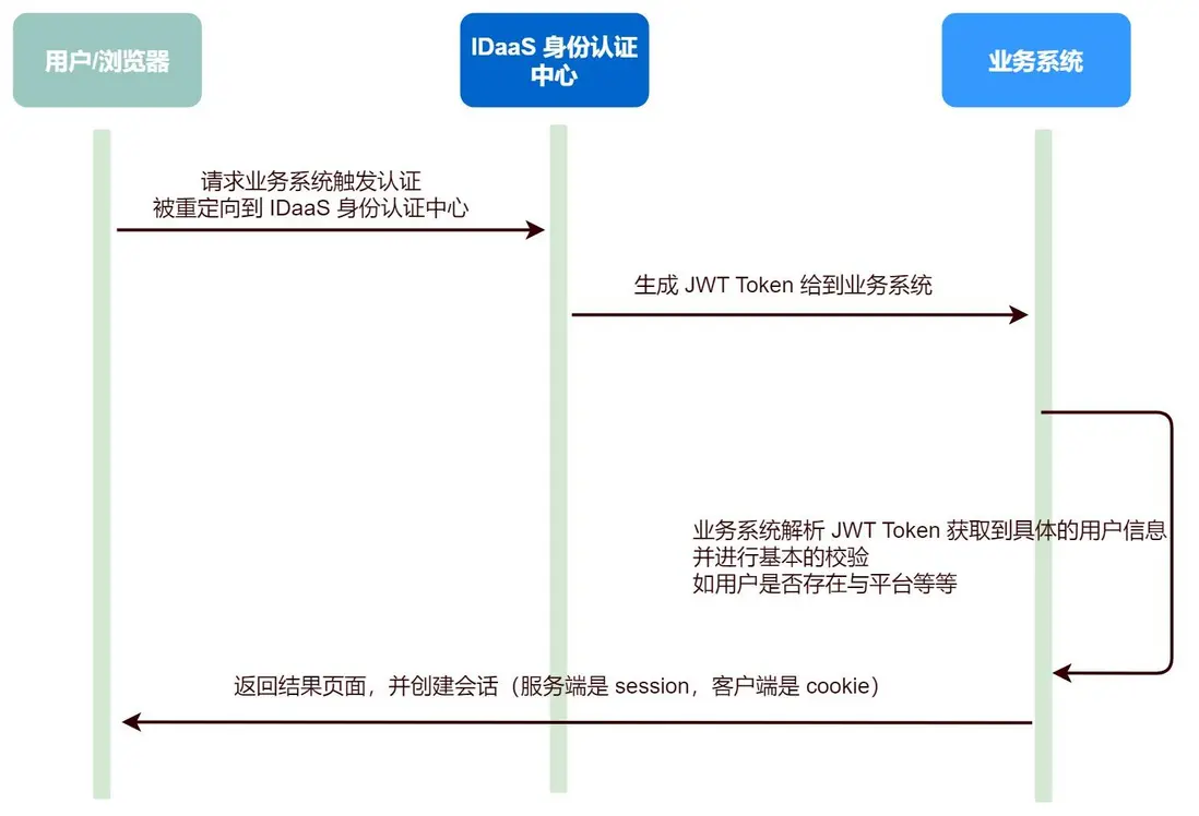 IDaaS 認證完畢後會將用户信息,具體的簽名算法,生成一個 JWT ,給到具體的應用(關聯繫統) ,關聯繫統用秘鑰解析 JWT 並拿到具體的用户信息之後,再去完成自己平台內部的各種校驗,進而讓該用户完成認證和授權