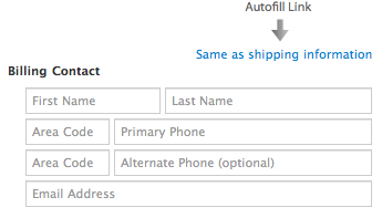 If a user is buying a product, they’ll have to submit payment and shipping information. Most of the time, the addresses will be the same, so let them auto-fill one from the other. You could include a link saying “Same as shipping information” in the payment section, and when clicked, it would repeat the shipping data in the payment fields.