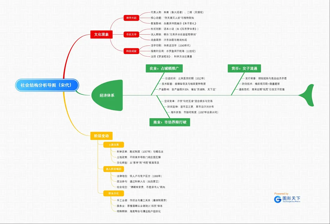 - 作為導圖的主幹內容,全面涵蓋宋代社會結構的重要方面。