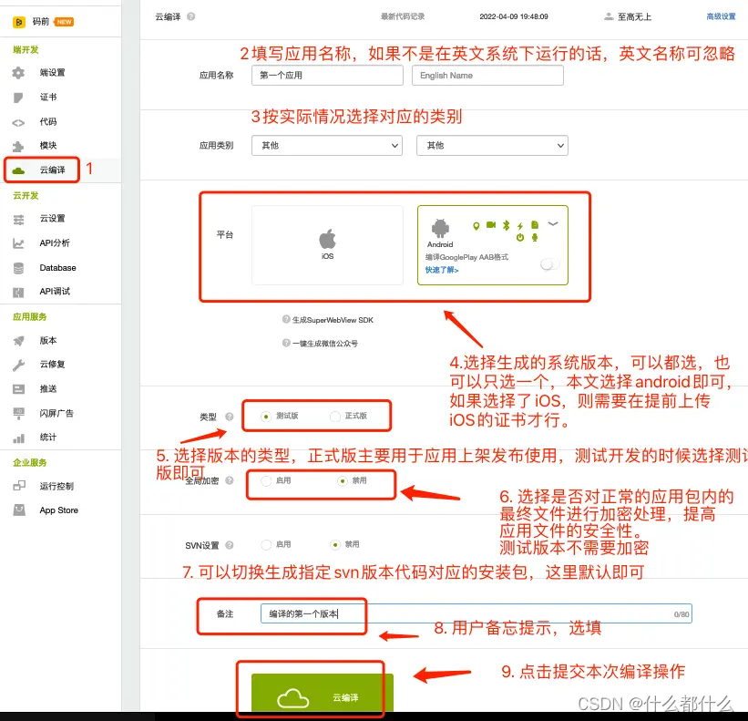 版本編譯,簡單來説就是將編寫的代碼,通過工具的編譯機制,編譯生成對應的手機可以識別的應用的安裝包文件。android 上對應的是擴展名為.apk 的文件,iOS 上對應的是’.ipa’的文件。android 因為是開源的,所以生成的文件支持直接提交上架應用市場,或下載到手機本地安裝直接運行使用。iOS 屬於閉源系統,基於使用的編譯證書的不同,可以生成對應的測試版本或者可用於上架的正式版本。