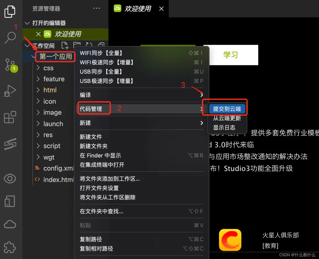 之前我們一直是在本地的開發工具上進行開發聯調,所以在進行版本編譯之前,務必保證將本地的代碼同步提交的雲端服務器,因為編譯的過程是在服務器端在線完成的,所以需要保證服務端倉庫的代碼是最新版。