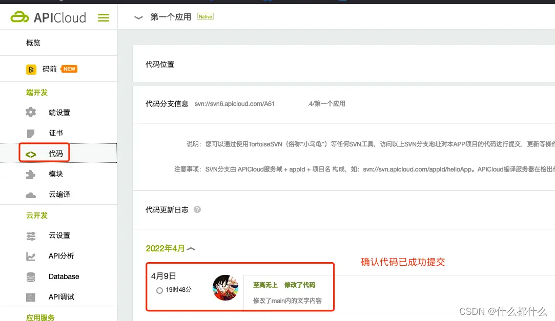 可以登錄官網 - 控制枱查看代碼更新記錄,用於判斷提交是否成功及查看當前應用最新版本的代碼情況
