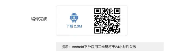 編譯完成後,可以選擇下載安裝包文件,或者直接用手機內置的瀏覽器掃描圖中的二維碼進行安裝