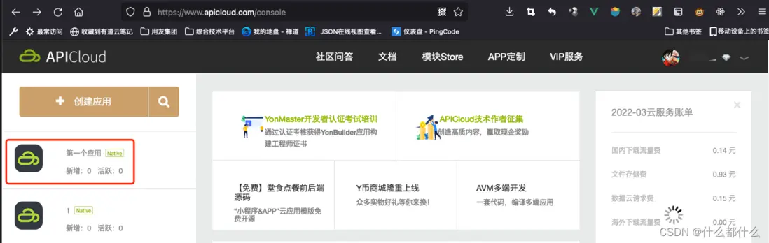 登錄 APICloud 官網控制枱 -> 選擇對應的應用,進入應用詳情頁
