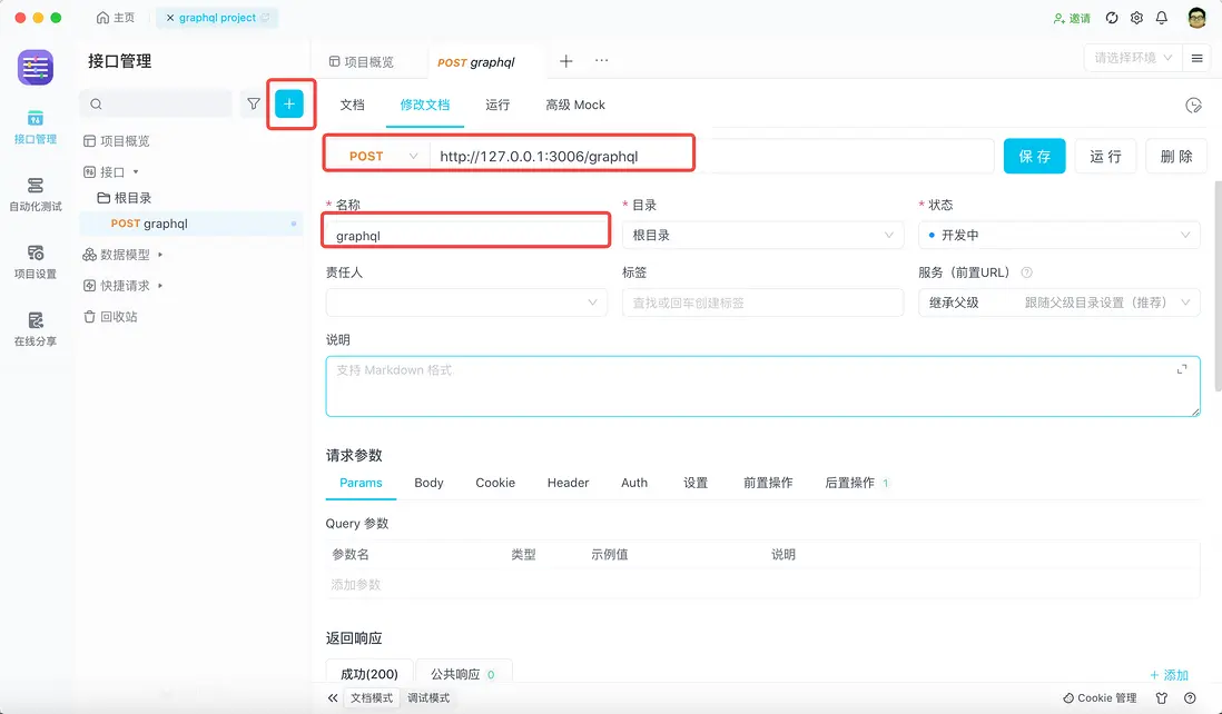 我們需要先在 Apifox 裏新建一個 GraphQL 請求,使用它去發起請求,並調試。