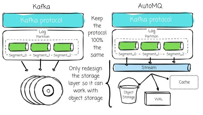 因此,任何廠商若想提供更優的替代方案,其首要前提必須是兼容 Kafka。推倒重來去構建一套全新的系統並非良策,重構 Kafka 的存儲層才是更為高效的路徑。