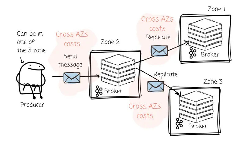 其顯著優勢之一在於大幅削減了跨可用區(Cross-AZ)傳輸的成本。系統能夠無縫地將流量從生產者路由至與其位於同一可用區的 Broker,從而避免了跨區流量費用的產生。
