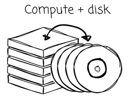 - 那時的網絡帶寬相當有限;因此,構建系統的標準做法是將計算與存儲緊密綁定在一起(即存算一體)。