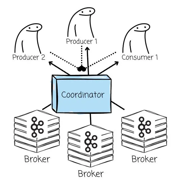為了實現無 Leader 架構,相較於原生 Kafka 方案,系統在部署時必須引入一個額外的組件。由於每個 Broker 都能處理讀寫請求,因此必須依靠協調器(Coordinator)來為客户端指派具體的 Broker、管理元數據,並重新實現那些原本由分區 Leader 掌控的所有 Kafka 高級特性。
