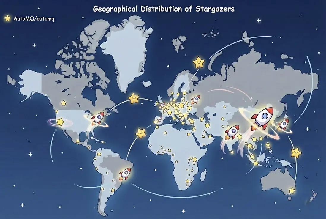 我們的GitHub Star用户分佈圖清晰地展示了AutoMQ 的全球化進程:除了深耕本土,我們在北美、歐洲等技術高地也獲得了廣泛關注。這充分説明 AutoMQ 提出的雲原生架構精準擊中了全球企業的通用痛點,具備世界級的技術競爭力。