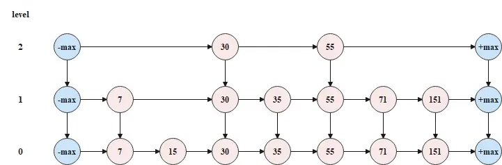 - 跳錶中的每一層都是一個有序鏈表,並且按照元素升序(默認)排列;
