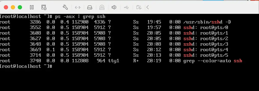 這樣我們再去查看的時候,就會看到只剩下一個正在運行的ssh服務。