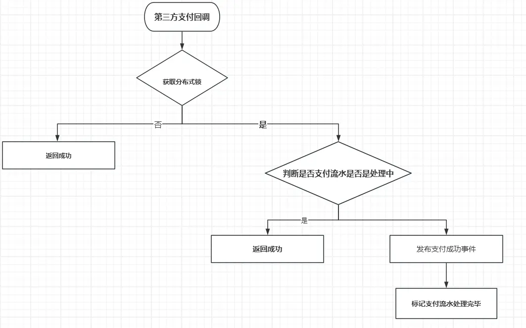 因此我們這裏為了避免產生強烈的副作用,在回調下游的時候,先引入分佈式鎖,避免兩個回調同時處理一筆流水,然後在處理的時候可以用查數據庫,如下代碼所示: