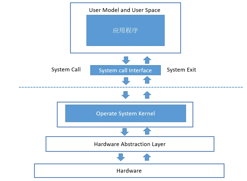 與之相對的兩個概念是內核模式(Kernel mode,有資料也稱為System Model 系統模式),是Linux中CPU運行模式之一。另一種是用户模式(user model),是用户程序的非特權模式,也就是內核以外的所有操作模式。當CPU運行在內核模式下面,默認運行的是受信任的程序,因此它可以執行任何指令和訪問任何內存位置。內核(操作系統的核心,對系統中發生的一切擁有完全的控制權)是被信任的軟件,其他程序不受信任,因此所用的用户進程都必須使用系統調用來請求內核執行特權指令,比如創建進程、I/O操作。