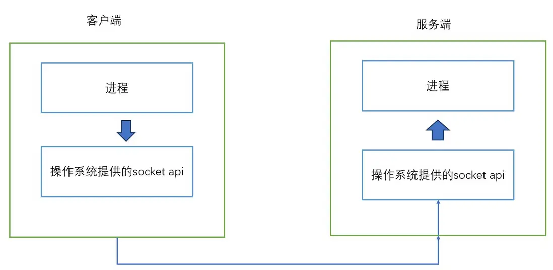 我們的程序通過Socket來和操作系統進行交互,這裏的Socket指的是操作系統提供的服務,當一個進程向一個進程發起請求建立連接的請求,這個數據包首先經過操作系統提供的接口向下傳遞,然後通過互聯網中層層設備轉發來到另一個進程所在的計算機上,兩台計算機完成連接建立之後,通知上層的應用程序。