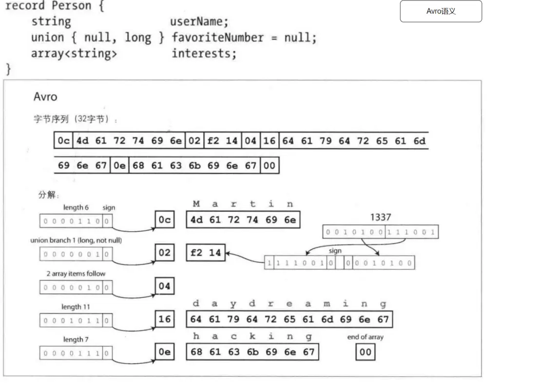 很多系統會選擇Json/XML等文本格式和Avro等二進制格式的方案[2]。