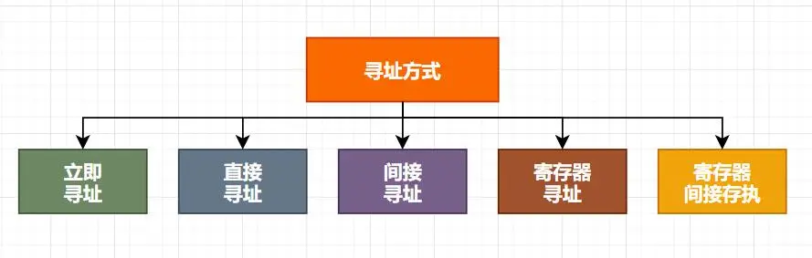 總體來説,尋址方式可以分為:立即尋址、直接尋址、間接尋址、寄存器尋址、寄存器間接尋址。