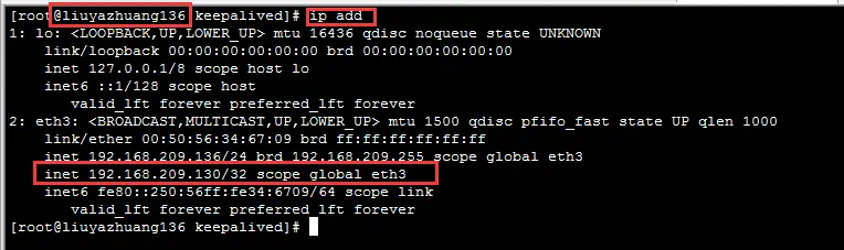 説明此時 VIP 已經漂移到物理主機 192.168.209.136上了