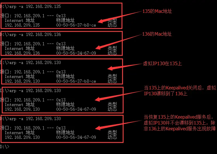 説明此時 VIP 已經漂移到物理主機 192.168.209.135上了