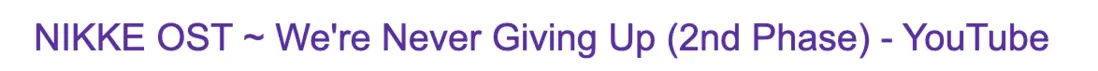 <title>NIKKE OST ~ We're Never Giving Up (2nd Phase) - [Crystal Chamber boss] [Extended] - YouTube</title>