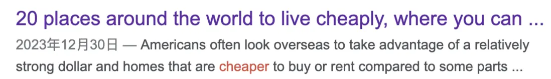 Google 並未使用包含 “the Cheapest” 的 <title> 內容,而是提取了 <h1> 的文本。