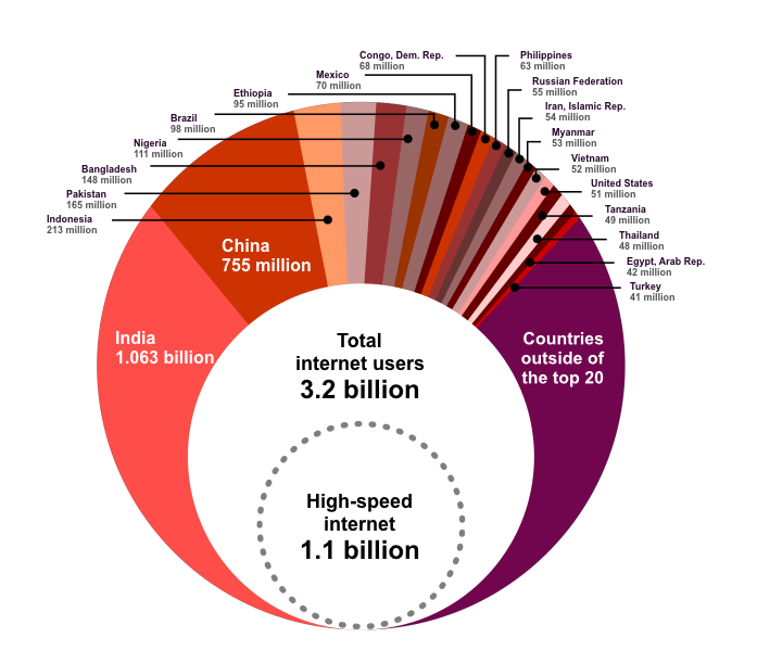 Unsurprisingly, many of those currently unconnected are in India, China, Indonesia — these being the biggest countries in the world. But being unconnected (for whatever reason) isn’t only a reality in developing economies; 51 million people in the US are not connected.