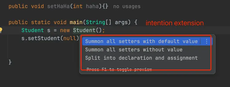 這裏我們擴展Intention Extension。Intention Extension即為代碼的提示擴展,快捷鍵option/alt + enter。