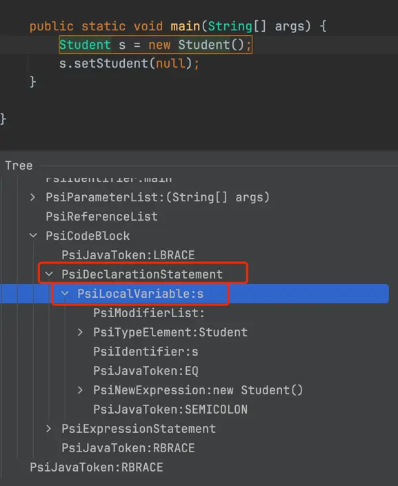 // 先找到PsiLocalVariable類型的父級元素,必須為PsiDeclarationStatement
