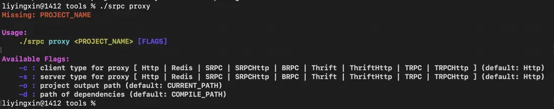 ./srpc proxy proxy_project -c trpc -s srpc