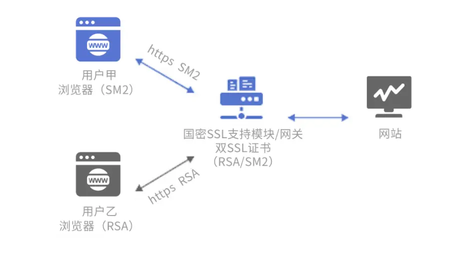 - 部署方式不同:國密證書在安裝時,不能直接沿用原有服務器配置,需要先對服務器進行專門的國密改造,確保服務器支持SM2算法的加密解密流程。