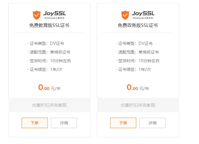SSL證書:https://www.joyssl.com/certificate/?nid=7