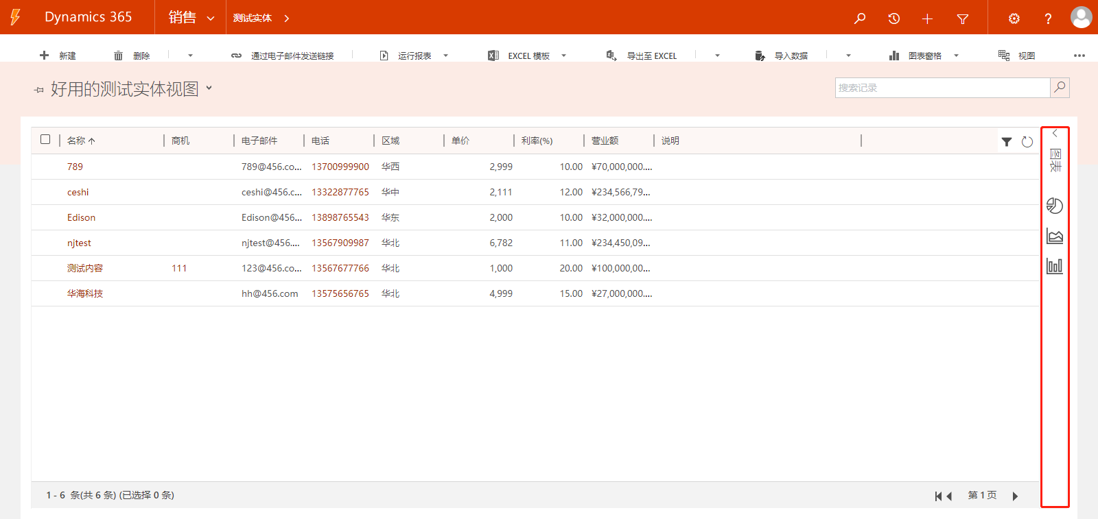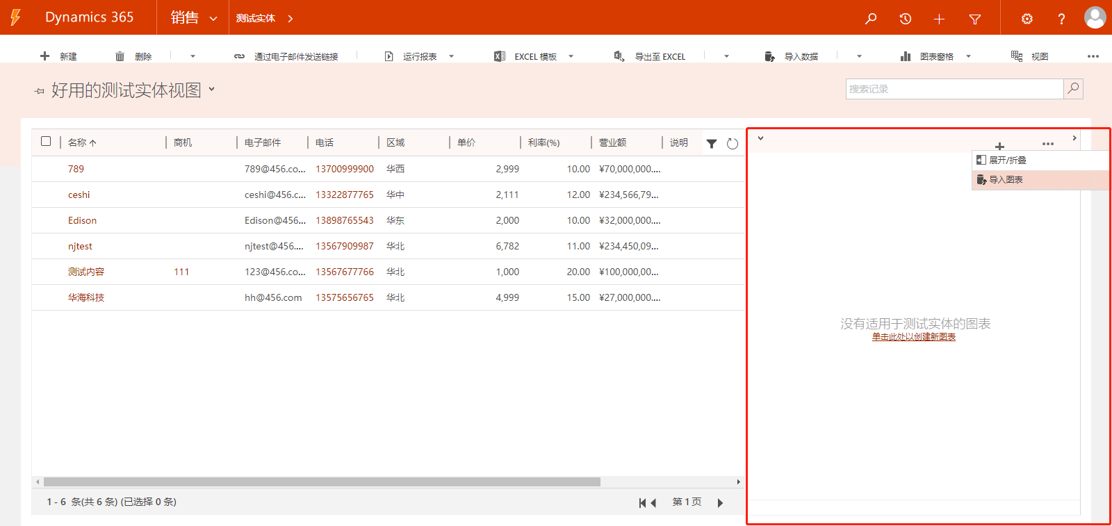 首先是個人圖表的創建。打開需要創建圖表的實體視圖界面,右側有一欄圖表欄,點擊後就可以進行個人圖表的創建了。