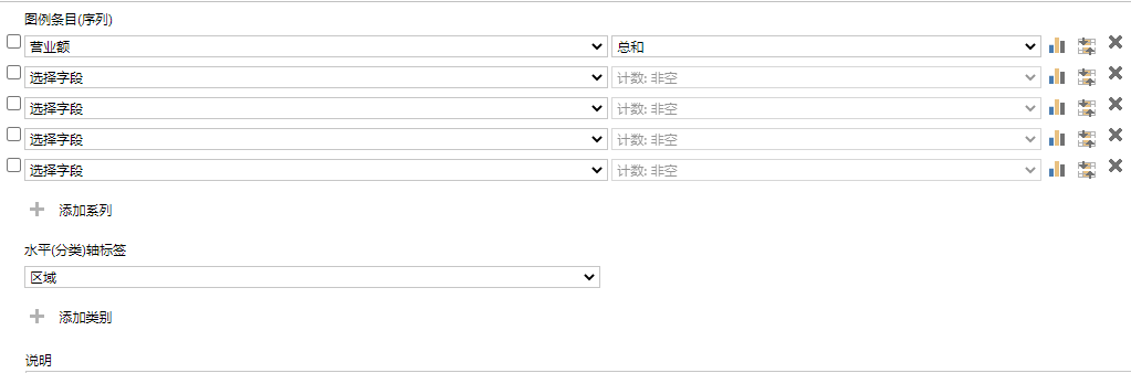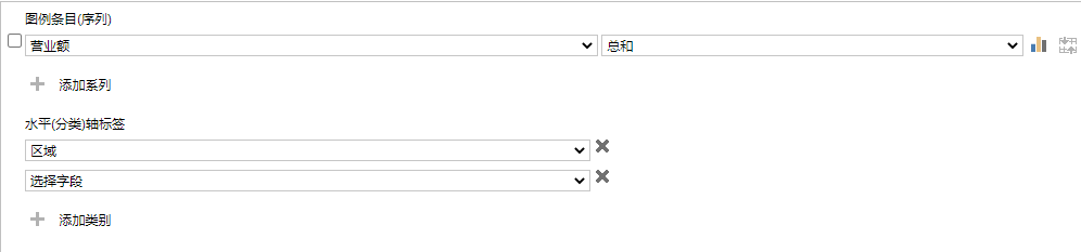 柱行圖可以添加五個不同的序列以及兩個水平分類。任意一類超過兩個另外一類只能選一個字段。可以根據自己的實際需求進行添加