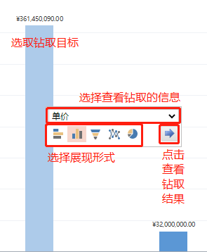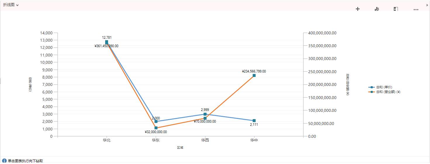 同時圖表支持鑽取,如果想查看華北地區的單價我們可以做如下操作