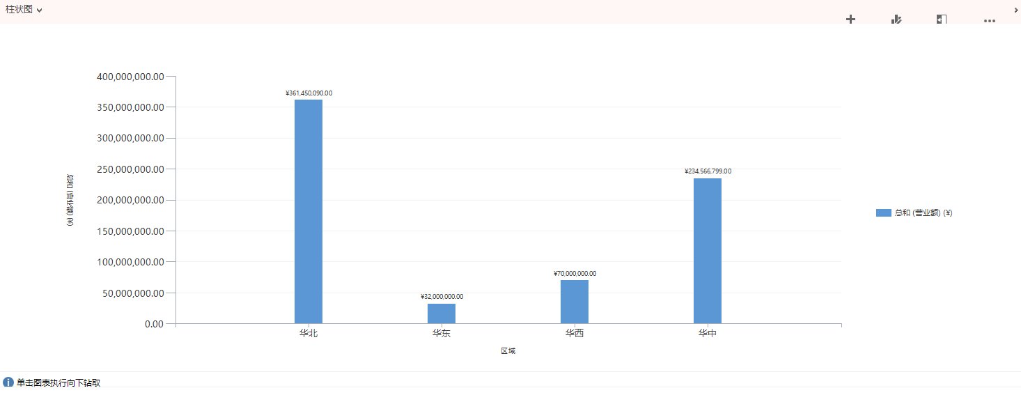 下面是一個以區域為橫座標,營業額總計為縱座標的柱行圖效果