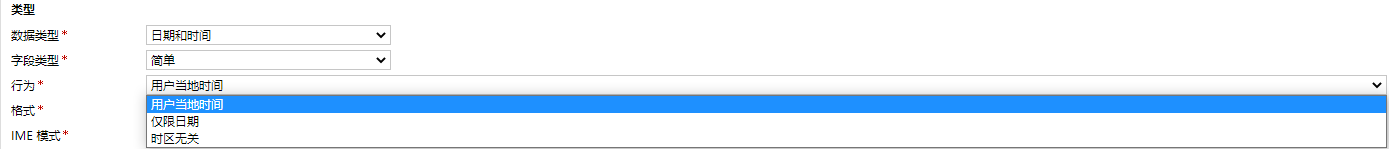 日期三種可選,僅日期的話字段只能展示日期,當地用户時間存放的是採用了GPT時區轉換,這種日期在數據庫存放的可能和界面上的不一樣所以做開發的時候需要注意。還有一種與時區無關保存的就是界面上選擇的時間。