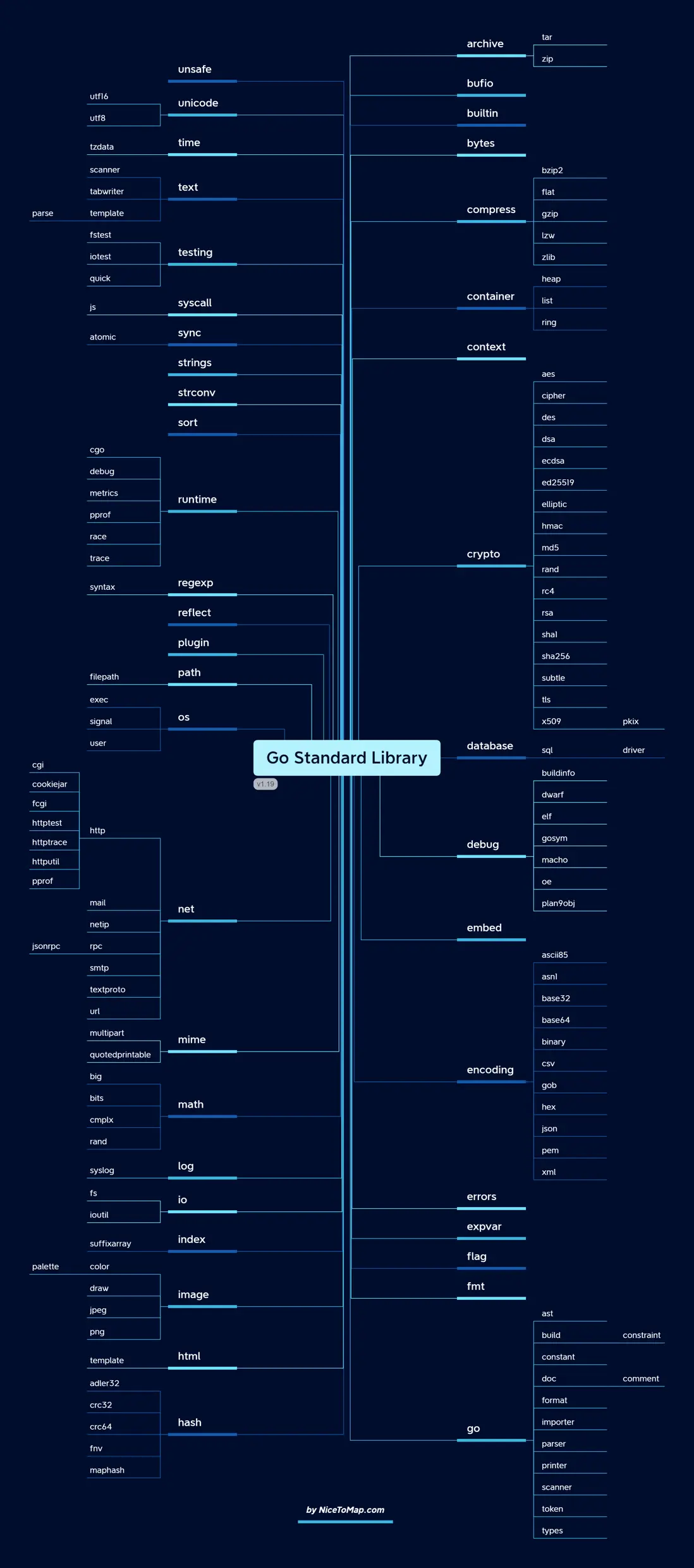 最後送上一個彩蛋,Go標準庫的腦圖,想學習Go標準庫的可以參考這個來。
