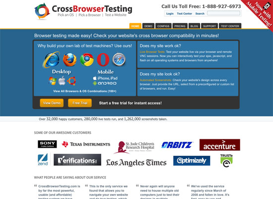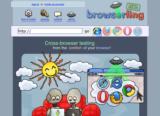 Browsera provides automated compatibility testing. It automatically highlights differences in the way browsers render your design, thus simplifying the testing process. It also detects JavaScript errors, and the commercial version can test pages behind subscription or log-in walls. It can also test dynamic pages.