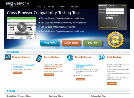 BrowserCam includes testing tools for both desktop and mobile browser compatibility (the latter is still absent in many other tools). It also offers remote access for live testing on Windows, Linux and OS X configurations, and email capture for checking your HTML, RTF and TXT emails.