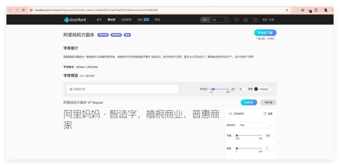 這裏就引用阿里媽媽方圓體字體,如下圖: