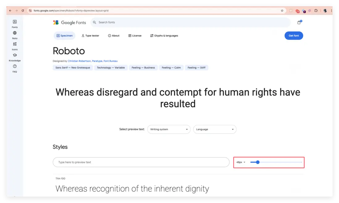 選中一個可變字體之後,進去後可以調整可變字體的版本,然後點擊右上角的 “Get font”按鈕。如下圖: