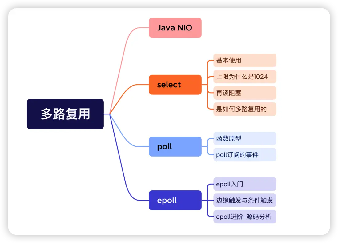 多路複用本質上就是同時監聽多個socket的請求,當我們訂閲的socket上有我們感興趣的事件發生的時候,多路複用函數會返回,然後我們的用户程序根據返回結果繼續處理這些就緒狀態的socket。